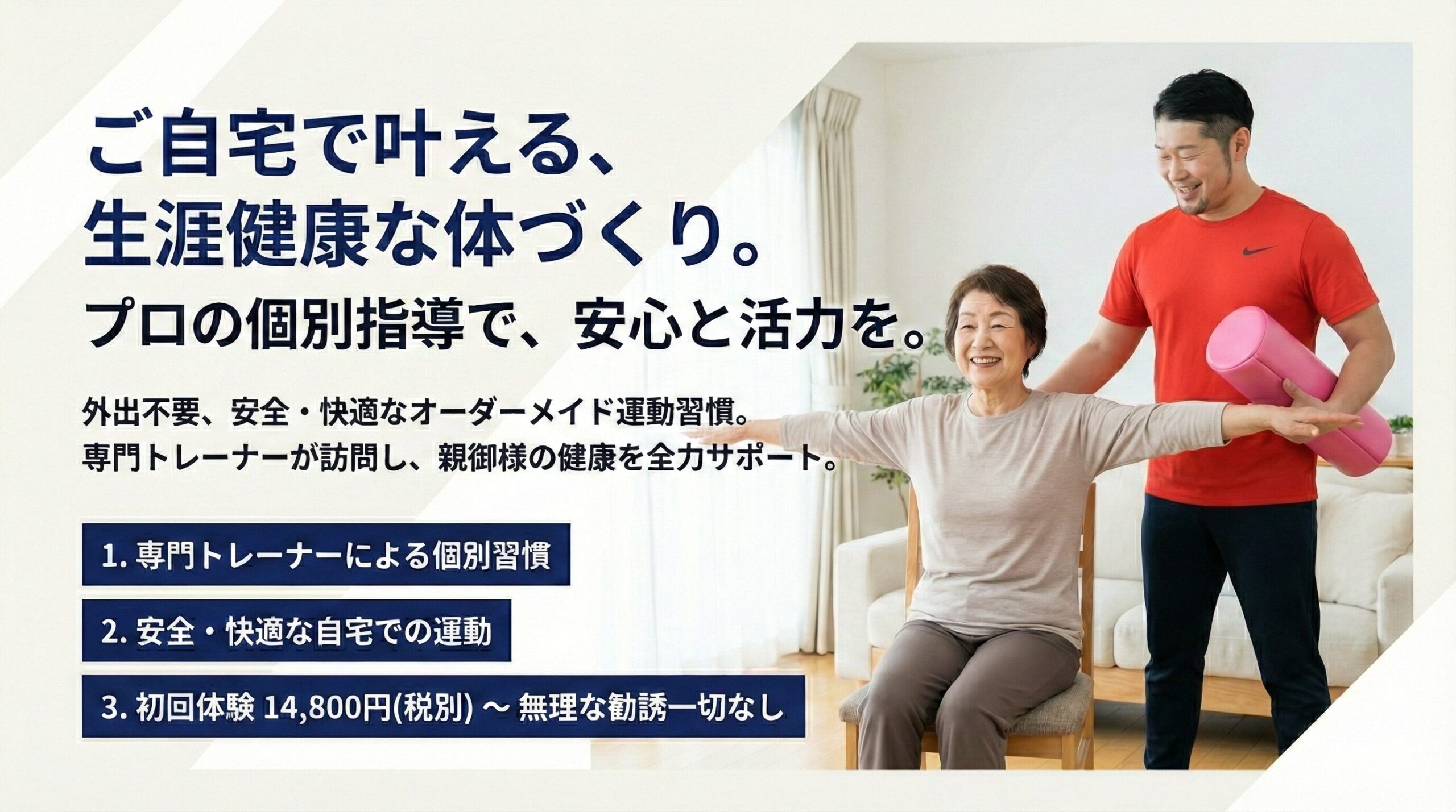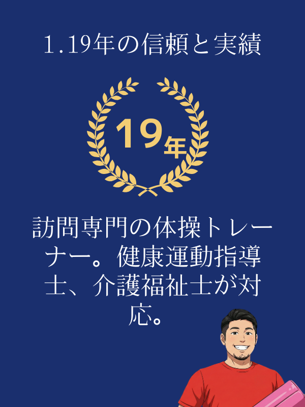 1. 19年の体操指導経験!介護施設とパーソナルトレーニングのエキスパートが対応