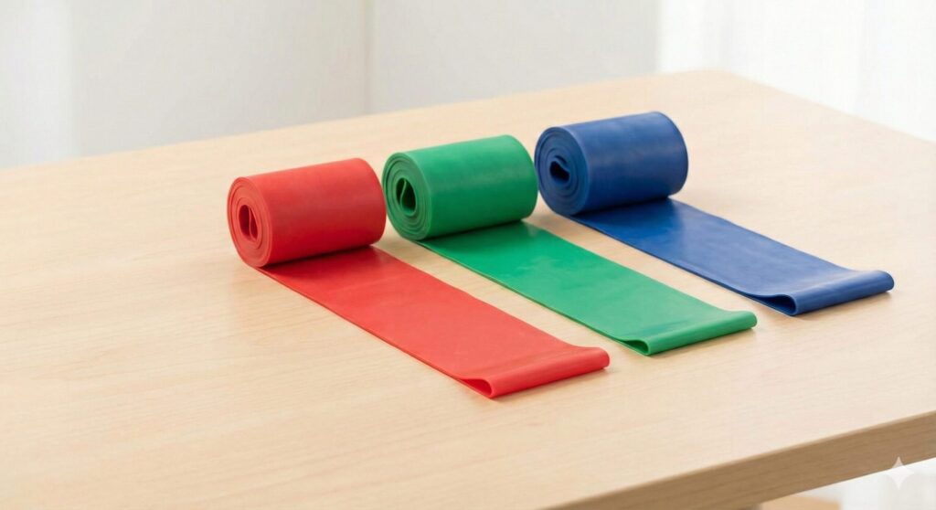 「四十肩・五十肩で腕が上がらない」という悩みも、セラバンドの補助があればスムーズに動かせるようになります。椅子の背もたれや座面を支えにすることで、より深いストレッチが可能になり、姿勢の改善(猫背予防)にも繋がります。