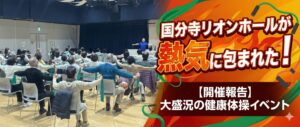 国分寺市シルバー人材センターご依頼のシルバーフェスティバルにてイベント対応させていただきました。50名弱の方にご参加いただきました。シニア・年齢を重ねても働ける体になれるような体操教室を目指しています。